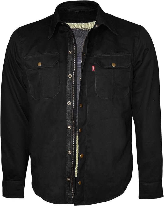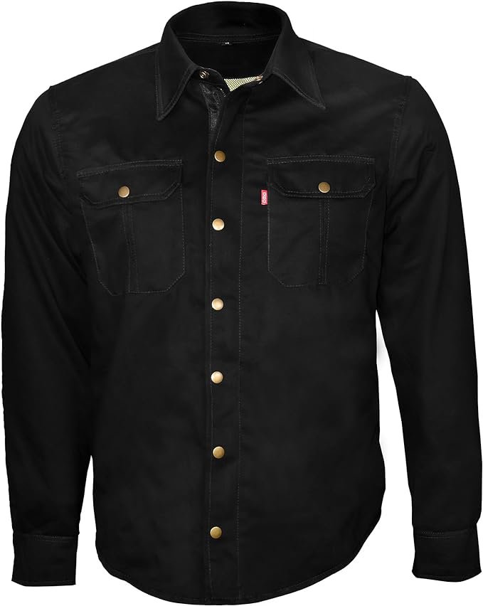 Great bikers Gear offers you the best Black Protective Aramid Lining Shirt, which provides ultimate protection and catchy looks. It does not look like a riding shirt at first glance, as it is like a normal casual shirt. The outer shell of this stunning looking shirt is made of heavy-duty cotton while its inner is reinforced with the abrasion-resistant .
